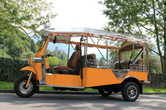 Das Tuk Tukkönnen Sie für Ihren Anlass mit Fahrer mieten. Natürlich fahren wir auch an schönen Tagen oder Abenden mit dem Tuk Tuk Taxi.Gechichte des Tuk TukDiethailändischen„Samlor“–„Dreirad“ - oder auch „Tuk Tuk“ genannt,sindcharakteristischfürdasStraßenbildBangkoksundvielerandererStädte.GewöhnlichbietensieinderFahrgastkabinezweibis drei Personen Platz, sind aber nicht selten auch mit mehr Gästen belegt.Tuk-Tuks werden hauptsächlich zur individuellen Personenbeförderung eingesetzt. Der Fahrpreis ist Verhandlungssache.Der Motor befindet sich wie bei einem Motorrad unter einer Abdeckung zwischen den Knien des Fahrers, der das Gefährt mit einem breiten, verchromten Lenker steuert. Die Sitzbänke sind schmal und nur wenig gepolstert. Die Höchstgeschwindigkeit liegt angeblich bei 100 km/h.Das thailändische Tuk-Tuk ist die Weiterentwicklung einer japanischen Version der fahrradbetriebenen Rikschaausden1950erJahren.In den letzten Jahren nahm die Anzahl der Tuk-Tuks stark ab. Vor allem in Bangkok machen Taxis, die klimatisiert, bequemer und nicht teurer sind, diesen traditionellen Fahrzeugen Konkurrenz. Auch der Bangkok SkytrainunddieBangkok MetrotragenzurEntspannungderVerkehrssituationbei,wasdenTuk-Tuks ihren spezifischen Vorteil mehr und mehr nimmt. Zudem sind spezialisierte Motorrad-Taxis (125 cm³) für Kurzstrecken sehr beliebt.